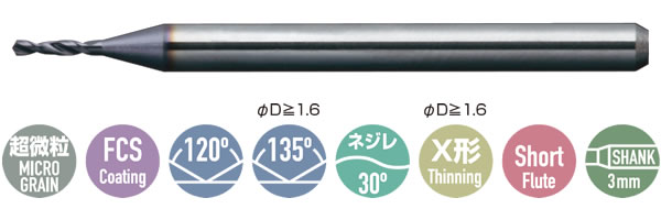 マイクロドリル “NEO-PRO” ショート刃 ADRS-SV ADRS-SV-0029 φ0.29