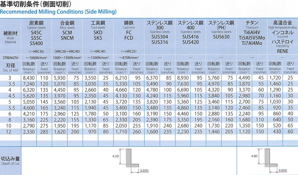 レボカット CMエンドミル RV4VR-5D 不等分割不等リード 4枚刃 5Dタイプ φ5.5