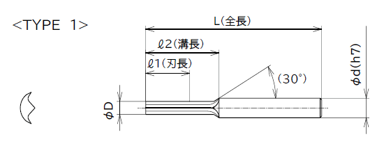 ゴム用ソリッドエンドミル クレセントエンドミル UGCE-0100050 1φ
