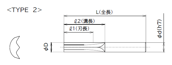 ゴム用ソリッドエンドミル クレセントエンドミル UGCE-0600065 6φ